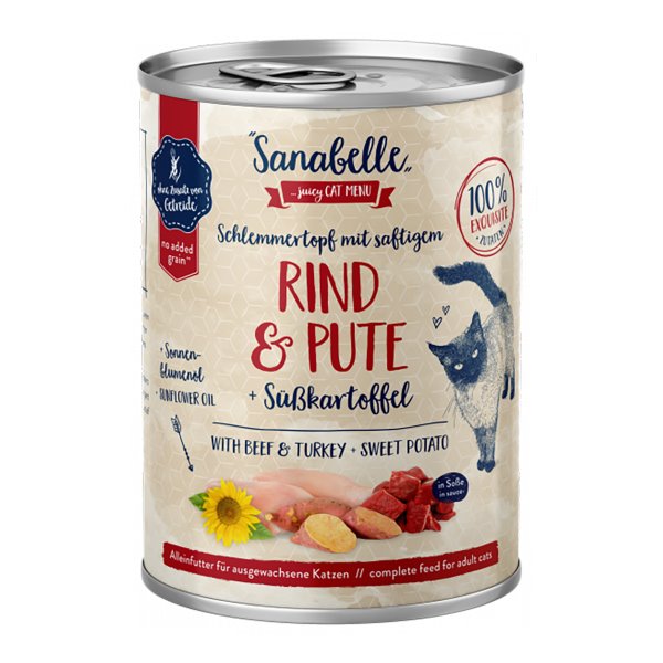Popoln obrok brez žitaric vsebuje visok delež govejega in puranjega mesa, ter ima dodano sončnično olje, ki poskrbi za zdravo kožo in kožušček.