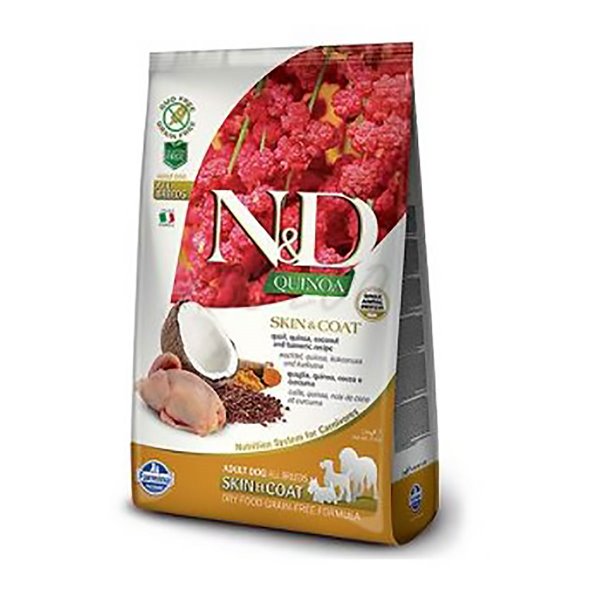 Hrana za odrasle pse s prepelico, kvinojo, kokosom in kurkumo, ustvarjena za podporo koži in kožuščku. Meso prepelice je bogato z beljakovinami in esencialnimi aminokislinami. Kvinoja ne vsebuje glutena in s pomočjo fitonutrientov blaži vnetja in deluje antialergijsko. Kurkuma pa očisti kožo ter ji povrne elastičnost in mehkobo.